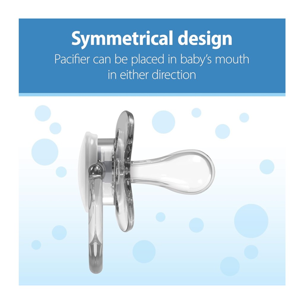 دارای 1 عدد پستانک دسته دار است که روی آن طرح زیبا کار شده؛ این پستانک با سوراخ های متعدد روی بدنه از تعریق پوست نوزاد و ایجاد حساسیت پوستی پیشگیری می کند. نوعی سری این پستانک از نوع بادامی است.
