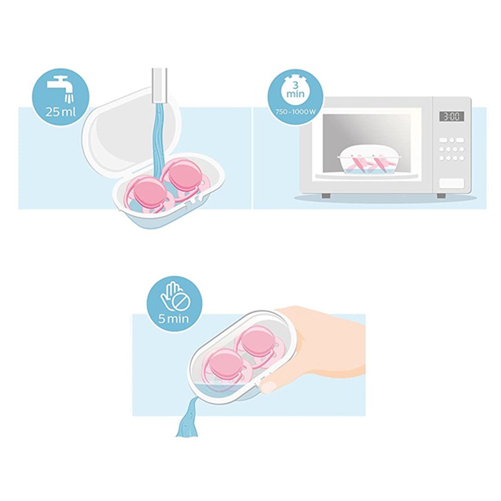 هر بسته شامل دو پستانک با دستگیره و بدون درپوش (جعبه پستانک ها همانند قاب پستانک مورد استفاده قرار میگیرد)