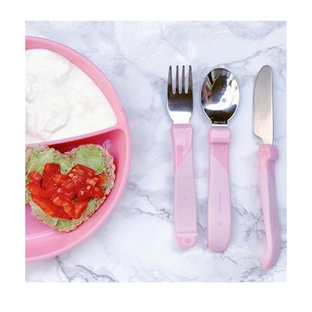 ست قاشق چنگال و کارد استیل تویست شیک صورتی برند سوئدی Twistshake تویست شیک با طراحی آرگونومیک ساخته شده از جنس استیل ضد زنگ، مناسب کودکان 12 ماه و بزرگ تر و دارای قابلیت شست و شو با ماشین ظرف شوئی می باشد.