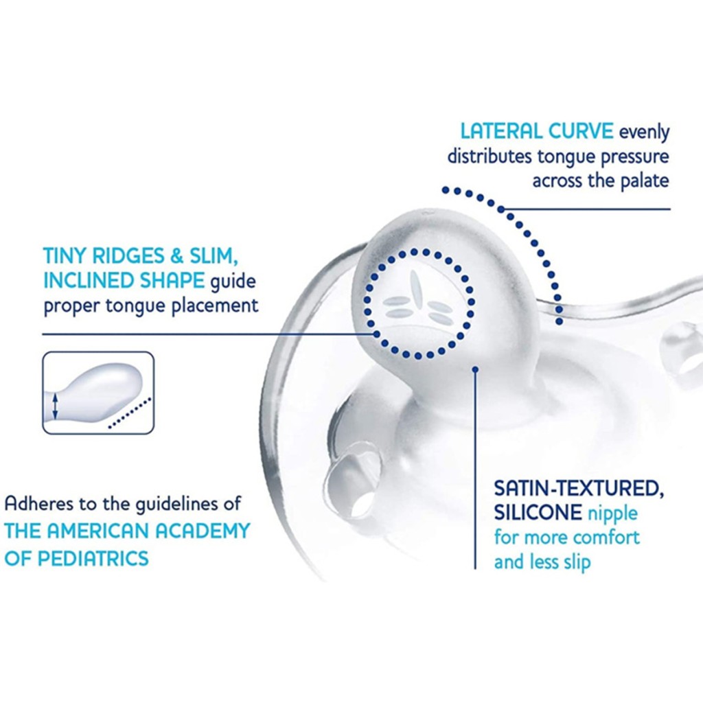 - دارای شیارهایی مشابه کام دهان نوزاد بوده که حس طبیعی مکیدن سینه مادر را برای کودک تداعی می کند