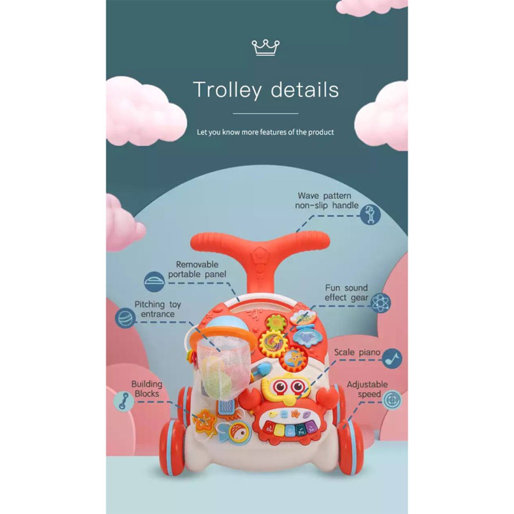 - کمک به راه رفتن کودک ، دو کاره : واکر و میز بازی ، امکان استفاده به صورت نشسته و ایستاده ، دارای کلیدهای پخش موسیقی ، مناسب آموزش اعداد - رنگ ها - اشکال و صداها ، قابلیت استفاده جداگانه از لوازم موجود بر روی واکر ، طراحی شده برای کمک به راه رفتن راحت و ایمن و با تعادل کامل