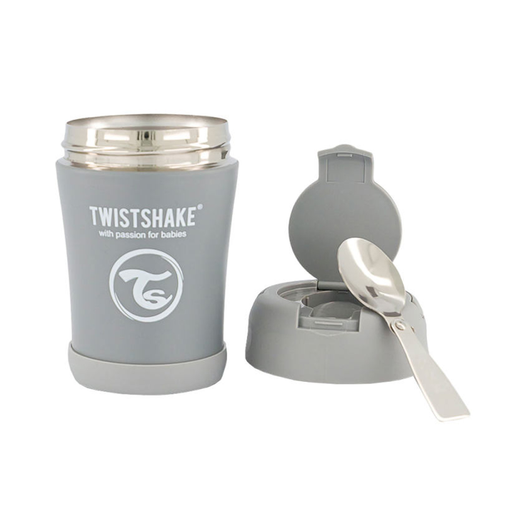 فلاسک غذا 350 میلی لیتری تویست شیک ساخت کشور سوئد عاری از هرگونه ماده شیمیایی مناسب نوزادان و کودکان شش ماه و بزرگ تر به همراه یک قاشق تاشو و کفی ضد لغزش می باشد.