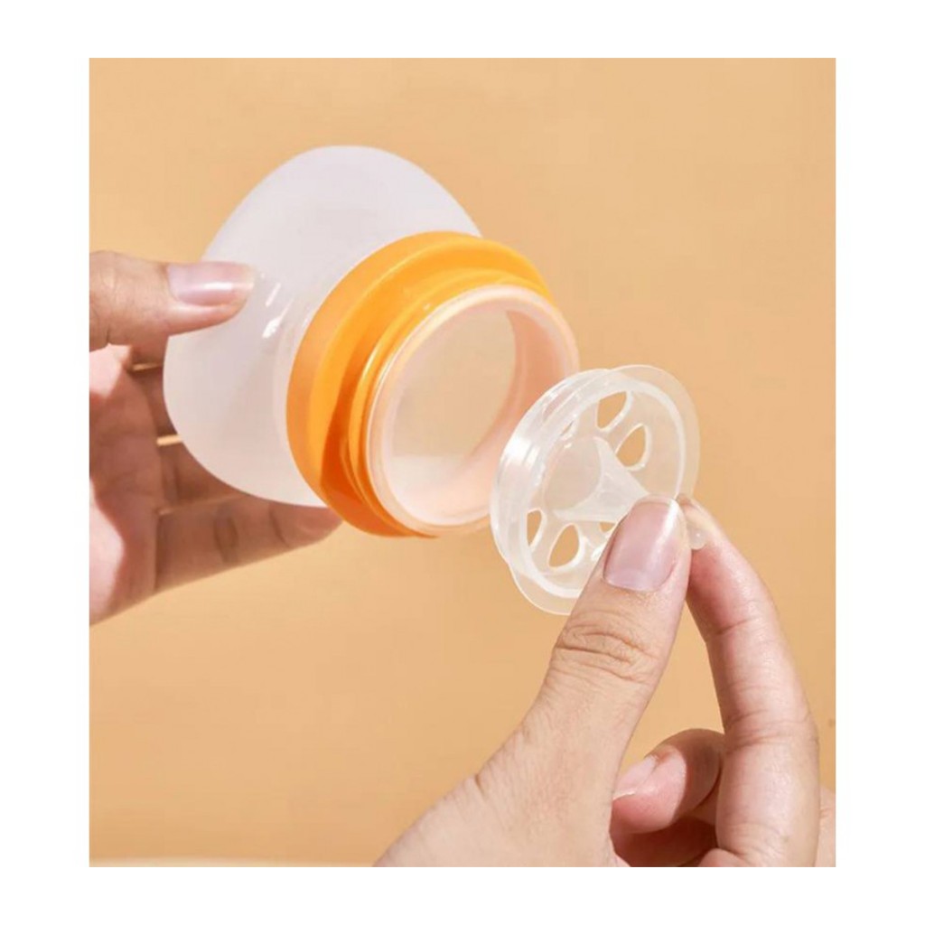 کافی است تا ماده ی غذایی مورد نظر را در بطری بریزید، قاشق محصول را روی بطری بگذارید و به راحتی به نوزاد خود غذا بدهید