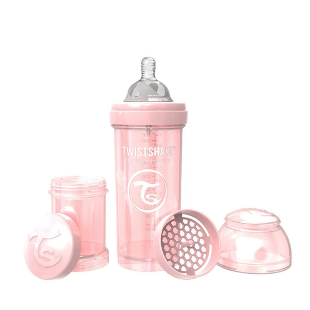 شیشه شیر طلقی 260 میل تویست شیک صورتی (صدفی) برند سوئدی Twistshake تویست شیک دارای سرشیشه سیلیکونی، طراحی آرگونومیک و سری ضد نفخ مناسب نوزادان 2 ماه و بزرگ تر می باشد.