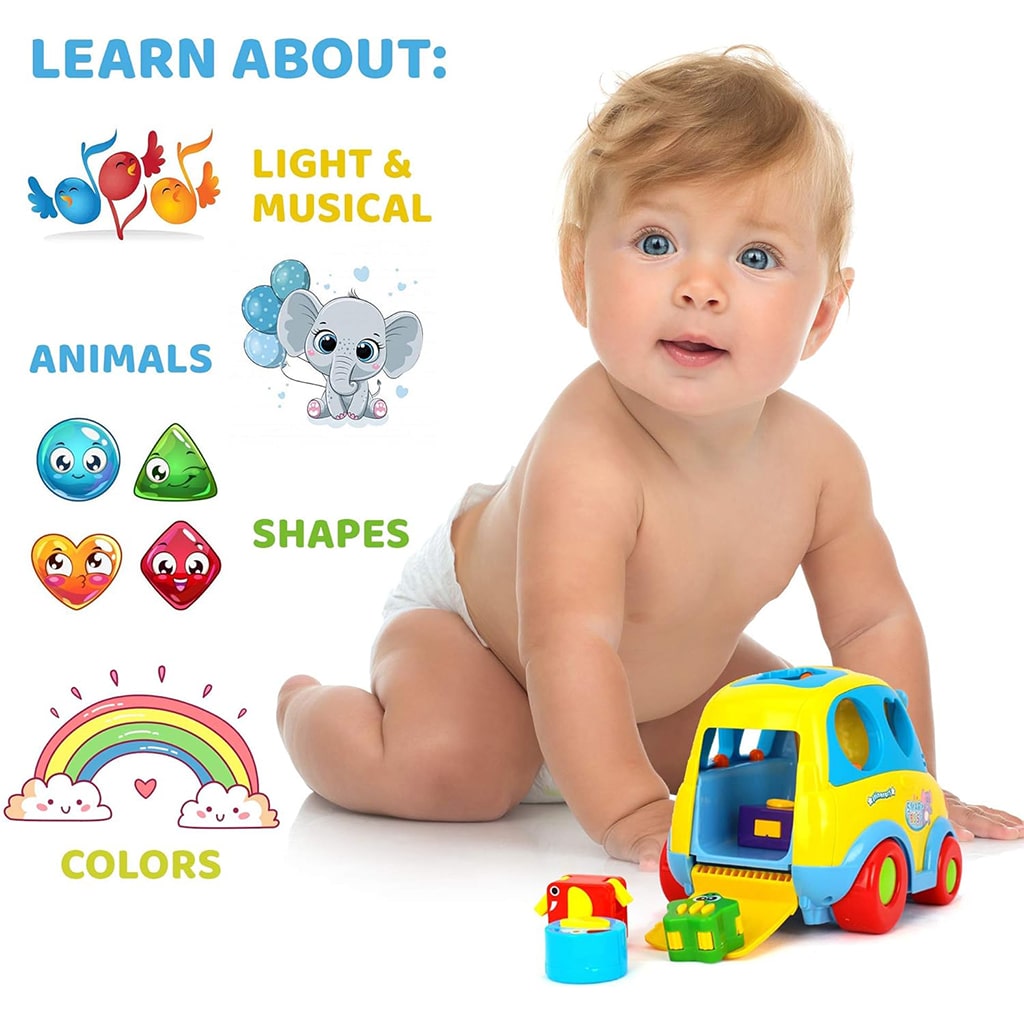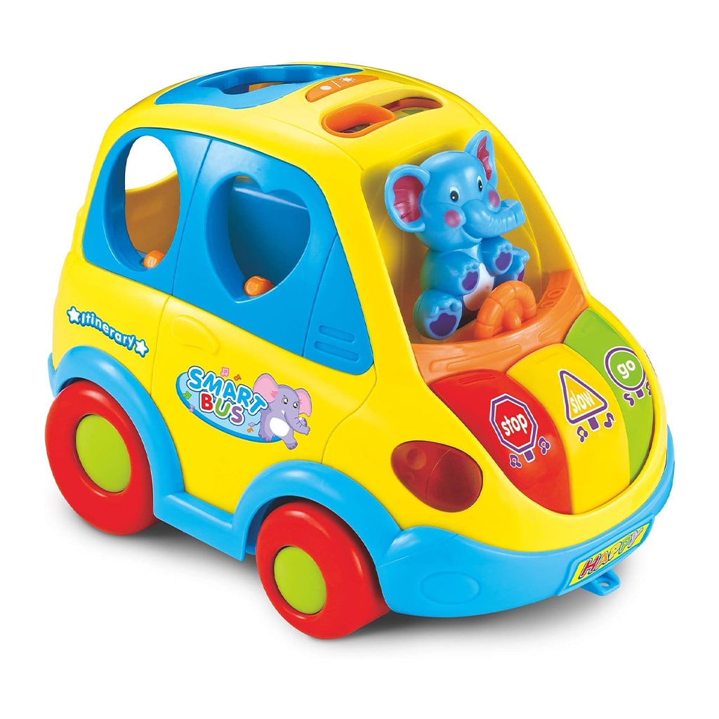 این اسباب بازی برای آموزش و سرگرم کردن کودکان طراحی شده و به تقویت مهارت های حرکتی، تمرکز، افزایش هماهنگی دست و چشم، و تقویت حس بینایی و شنوایی آنها کمک می کند. همچنین راننده این ماشین موزیکال، یک فیل است که در زمان حرکت با صدای موزیک به سمت چپ و راست حرکت می کند. این ماشین زیبا به اطراف حرکت کرده و موقع برخورد با مانع مسیر خود را تغییر می دهد و به حرکت خود ادامه می دهد.طراحی این ماشین موزیکال بدین صورت است که جلوی ماشین سه دکمه قرار داده شده که فشردن هر یک از آنها، یک موزیک متفاوت را پخش می کند. علاوه بر این، با فشار دادن دکمه ها می توان رنگ و شکل هر دکمه را به زبان انگلیسی شنید.ماشین دارای افکت های جذاب نور و صدا برای کودکان بوده و در قسمت جلوی آن حلقه ای برای اتصال نخ و کشیدن آن توسط کودک وجود دارد. همچنین، در صورتی که کودک هر کدام از اشکال روی ماشین را به درستی در جای خود قرار دهد(جای گذاری اشکال هندسی) صدای آن شکل پخش می شود.
