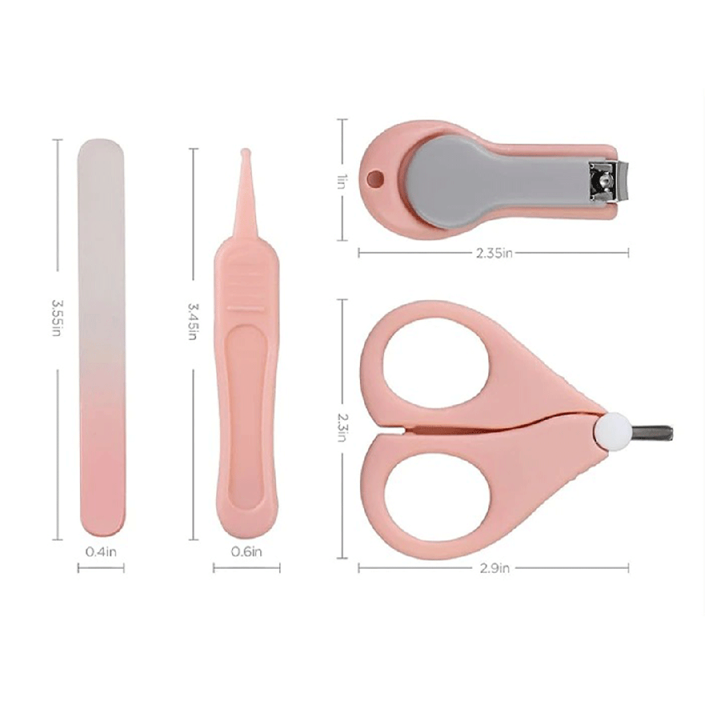 - شامل: 1- قیچی 2-ناخنگیر 3- سوهان ناخن 4- موچین پلاستیکی (برای تمیز کردن بینی، گوش و ناف نوزاد)