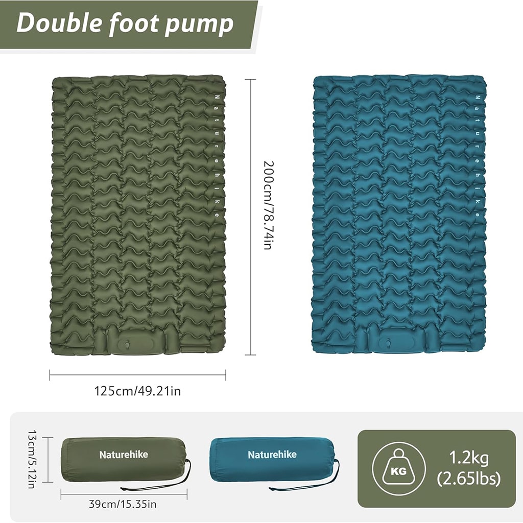 زیرانداز بادی دو نفره نیچرهایک مدل CNK2550WS019 با طراحی پیشرفته و قابلیتهای کاربردی، انتخابی ایدهآل برای کمپینگ رمانتیک، سفرهای دو نفره و اقامت در طبیعت است. این محصول ترکیبی از راحتی بالا، عایقبندی موثر و قابلیت حمل آسان را ارائه میدهد و با سیستم باد شدن یکپارچه، همراهی مطمئن برای خوابی راحت در شرایط outdoor محسوب میشود.