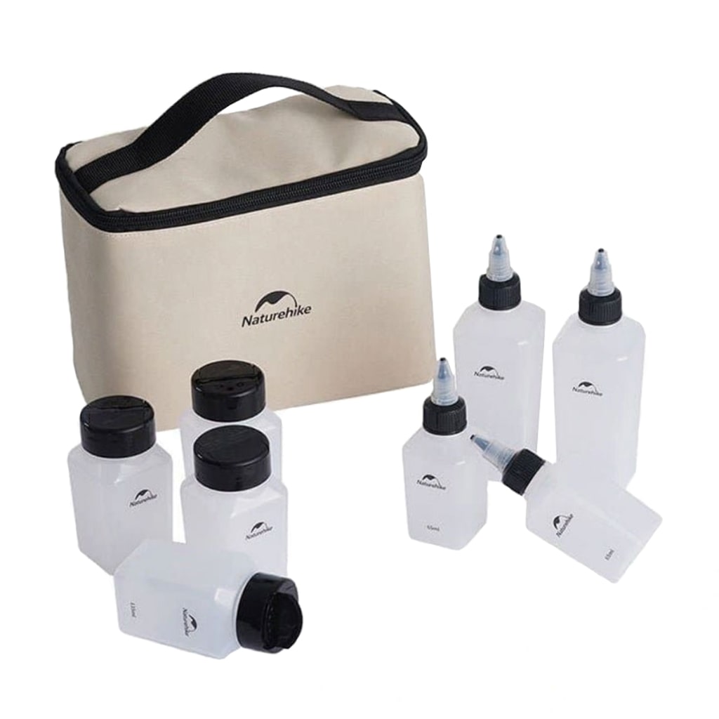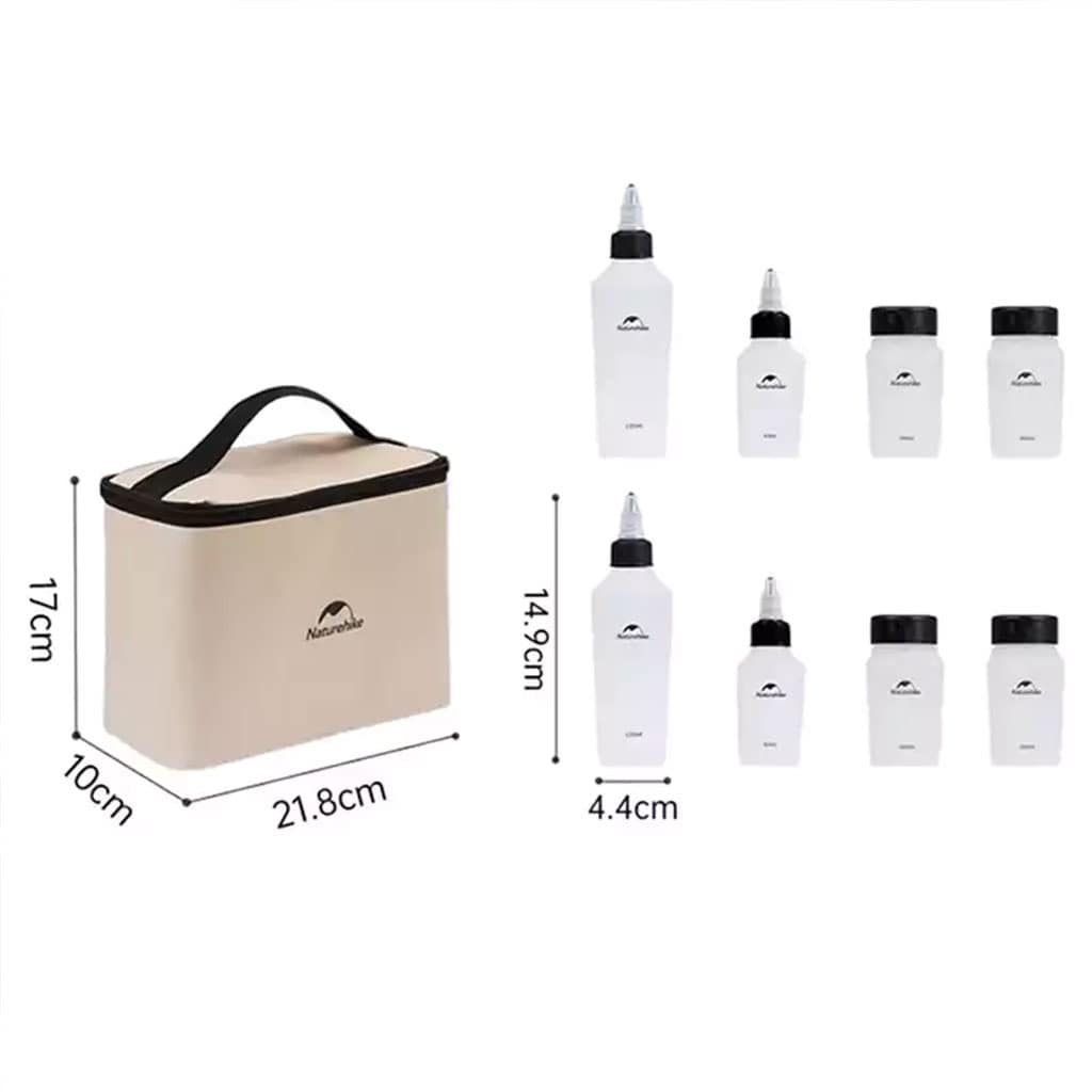 در این ست، 4 عدد شیشه ادویه با ظرفیت 100 میلیلیتر برای نگهداری چاشنیهایی مانند نمک، فلفل و زردچوبه در نظر گرفته شده است. همچنین 2 بطری مایع کوچک با ظرفیت 65 میلیلیتر و 2 بطری بزرگ با ظرفیت 135 میلیلیتر برای حمل روغن، سرکه، سس یا آبلیمو وجود دارد.