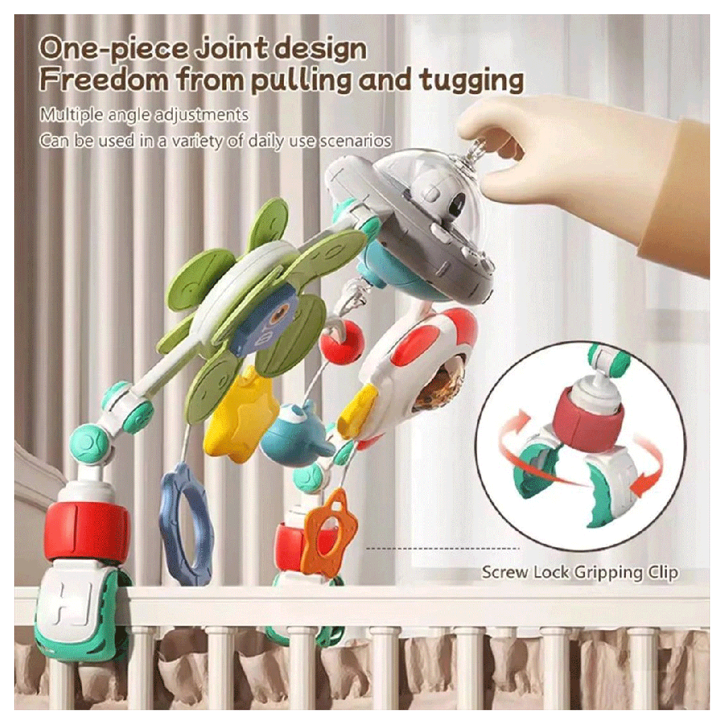 دارای آویزهای جغجغه ای و آینه نشکن و فرفر ای که با کشیدن کودک می چرخد