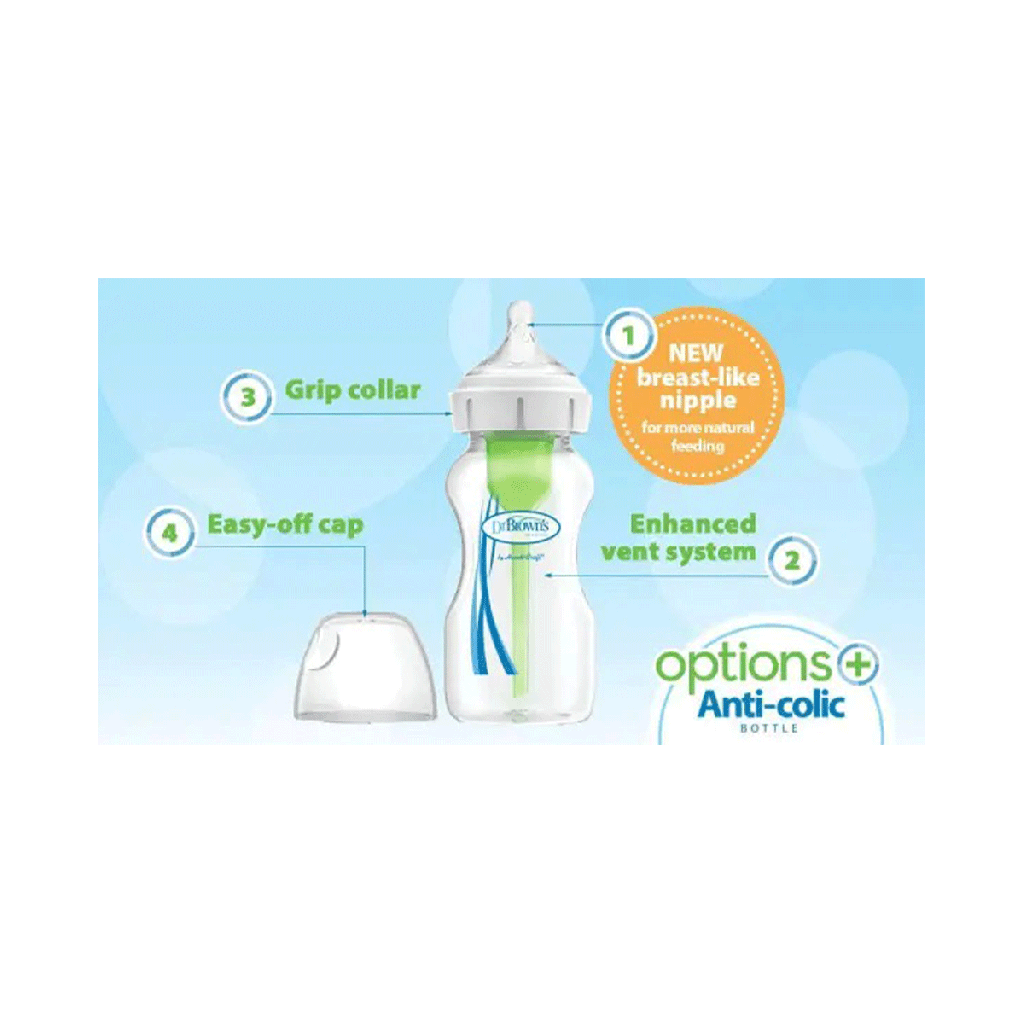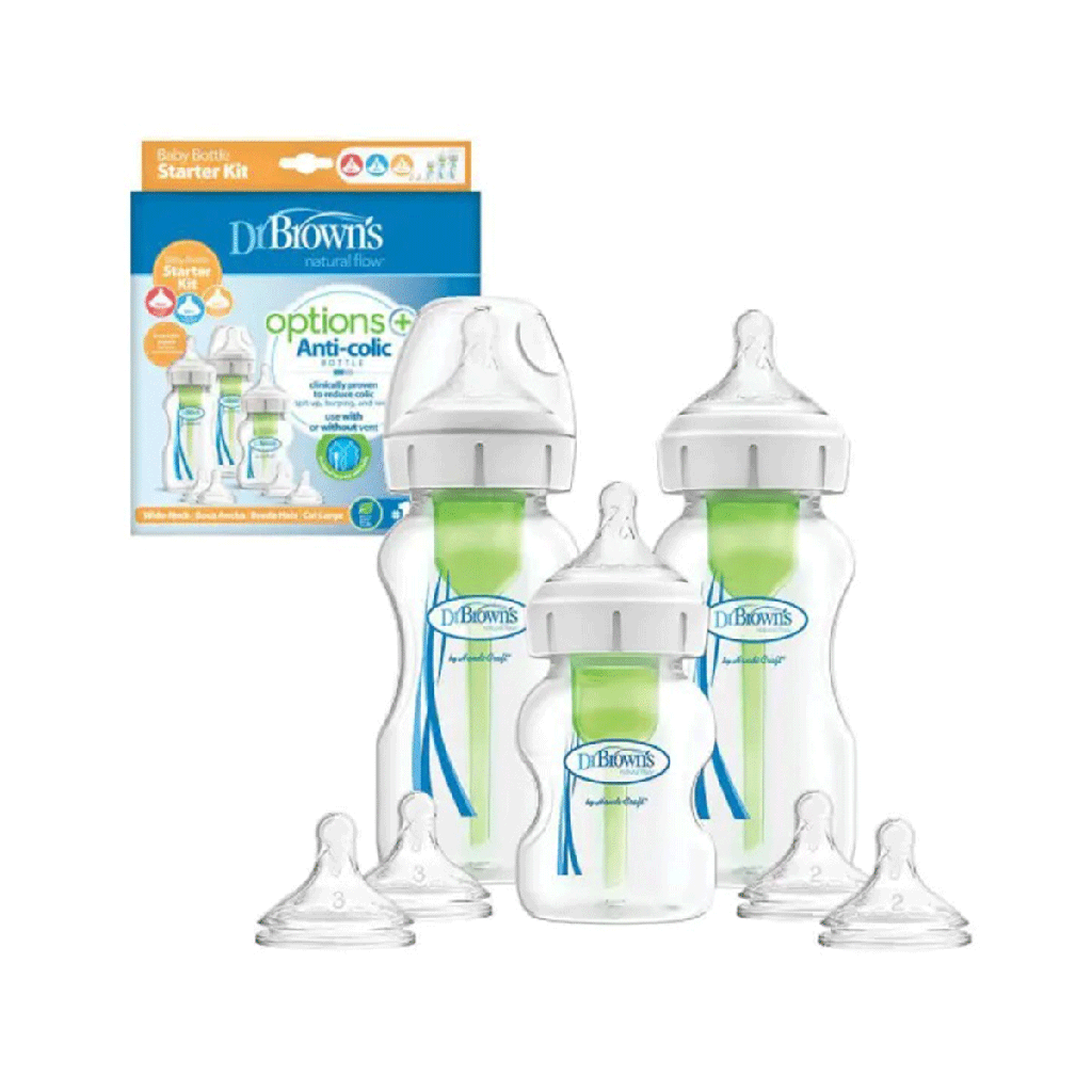 محصول فوق ست آغازین دکتر براون میباشد. شیشه شیر های این ست از نوع دهانه عریض نزدیک به سینه مادر است و سیستم آنتی کولیک آن تا 98% هوای داخل شیشه شیر را تخلیه میکند.