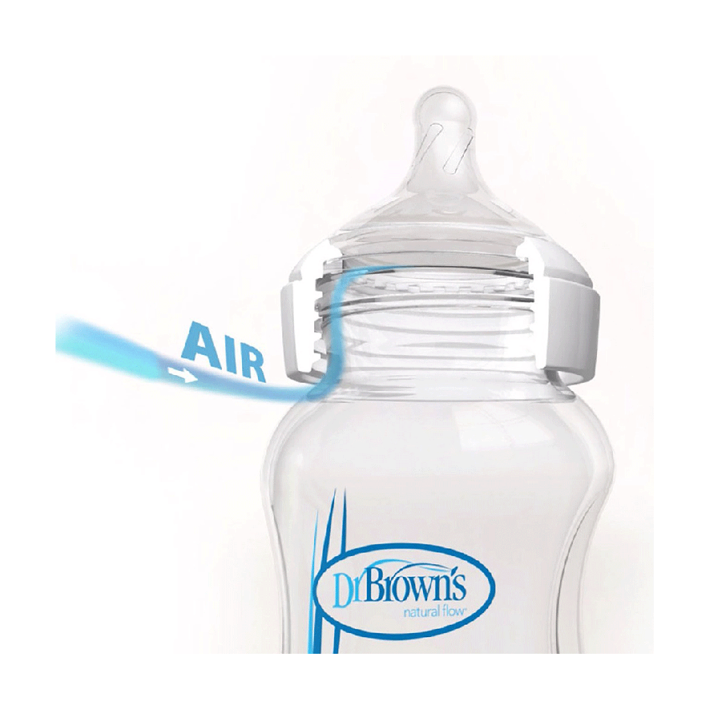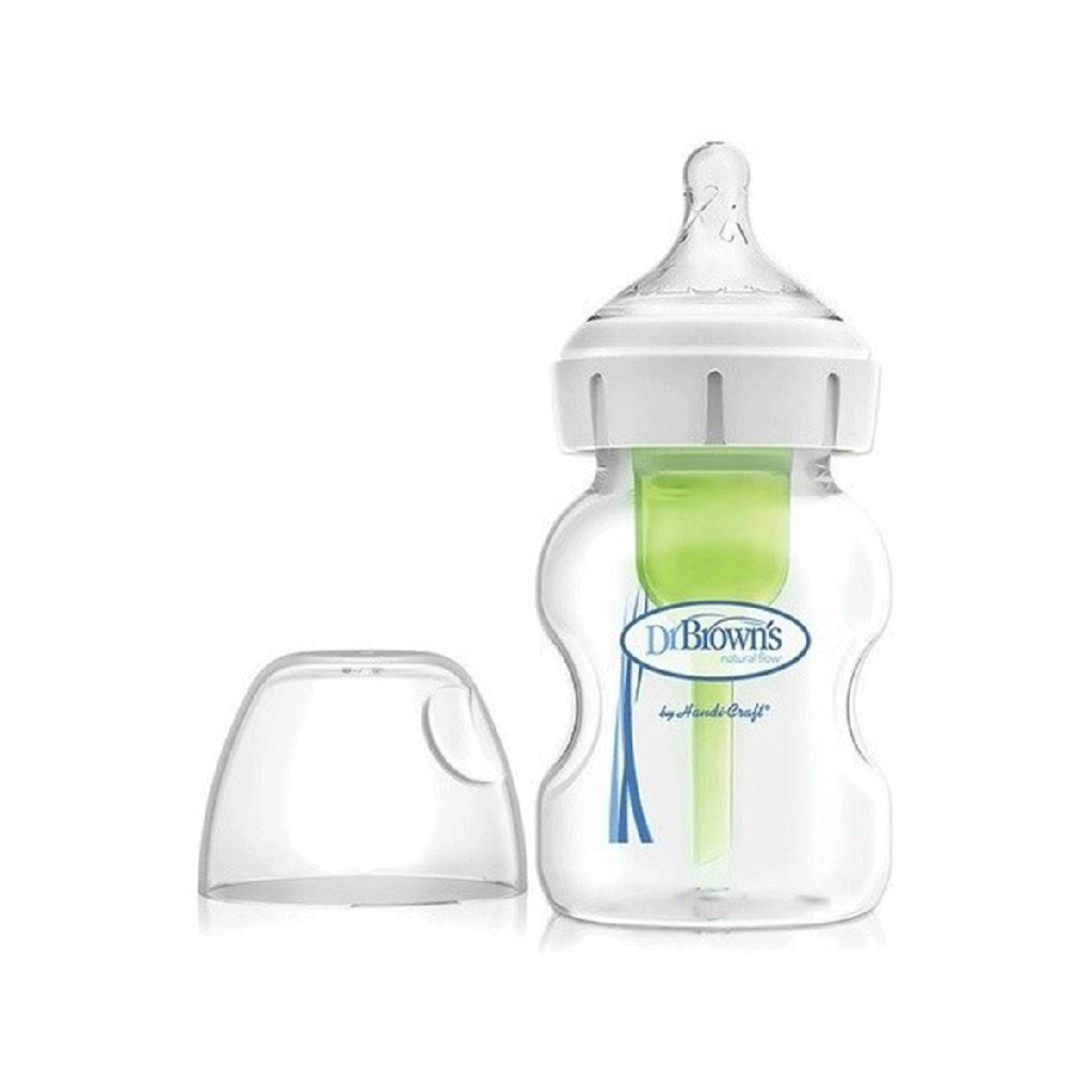 شیشه شیر پیرکس دکتر براونز 150 میلی لیتری Dr.Browns مدل آپشن پلاس دکتر براونز از جدیدترین تولیدات این برند مطرح آمریکایی است.این شیشه شیر دارای گنجایش 150 میلی لیتر و دارای سیستم ضد نفخ است و با استفاده از لوله ای که داخل شیشه شیر طراحی شده از کولیک کودک جلوگیری می کند.
