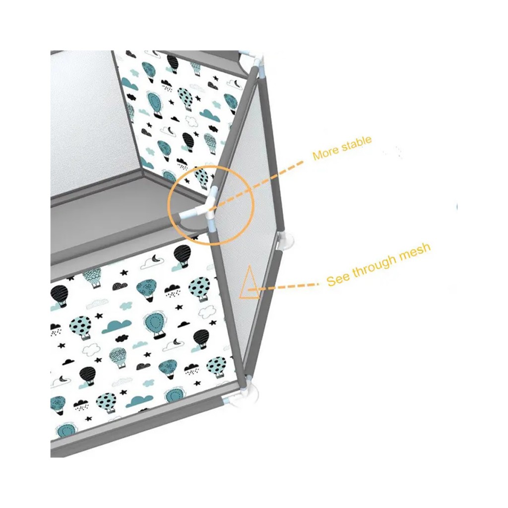 دیواره ی این پارک بازی از جنس توری است و اگر کودک زمان زیادی هم در آن بماند راحت تنفس می کند.