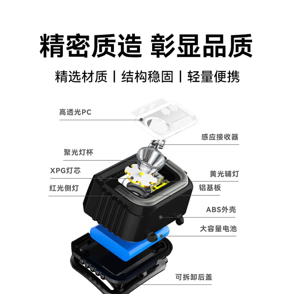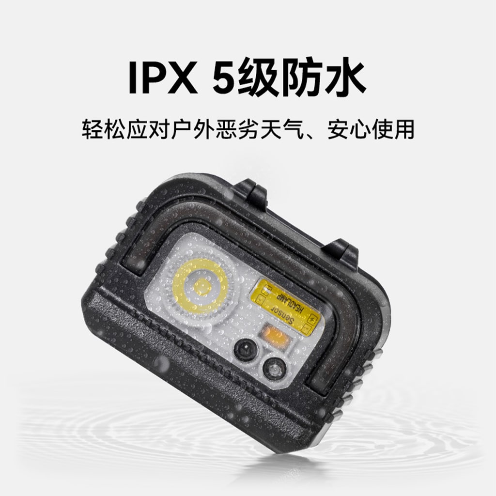 این هدلایت برای سختترین شرایط ساخته شده است. استاندارد ضدآب IPX5 آن را در برابر پاشش آب، باران و رطوبت مقاوم میسازد. جنس بدنه از ترکیب ABS + PC پلاستیک و جنس لنز از پلیکربنات شفاف (PC)، باعث افزایش مقاومت در برابر ضربه و سقوط میشود. ابعاد محصول 6.2 × 5 × 3.3 سانتیمتر بسیار جمعوجور بوده و بند کشی الاستیک 2.5 سانتیمتری آن نیز بهخوبی روی سر فیت میشود.