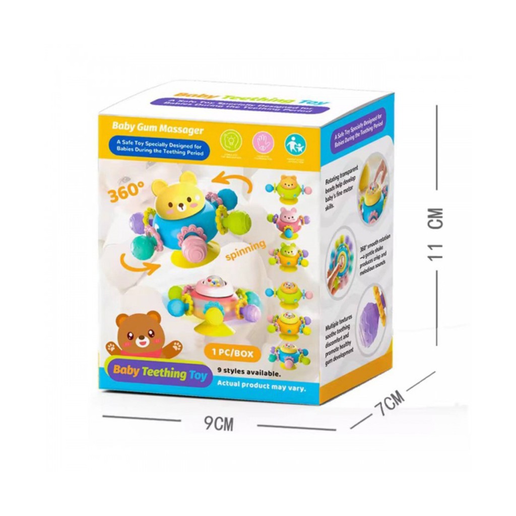 جنس توپ ها: سیلیکون نرم و بادوام، در رنگهای شاد و متنوع. توپ ها دارای برجستگی های مختلف جهت تسکین خارش لثه کودک طراحی شده اند.