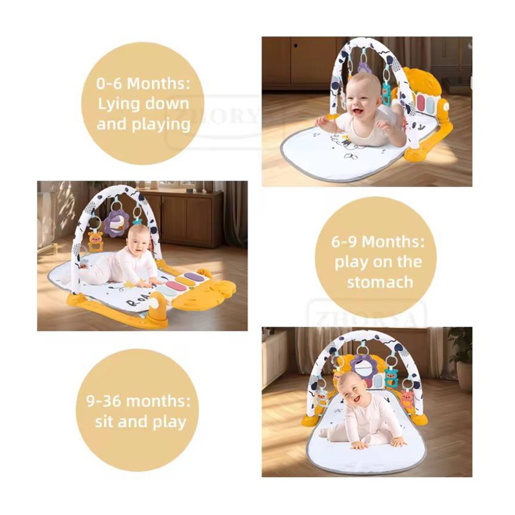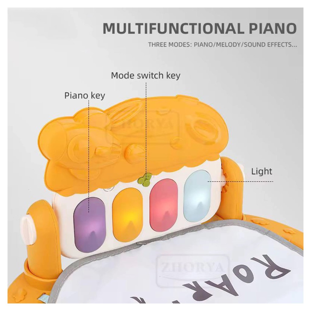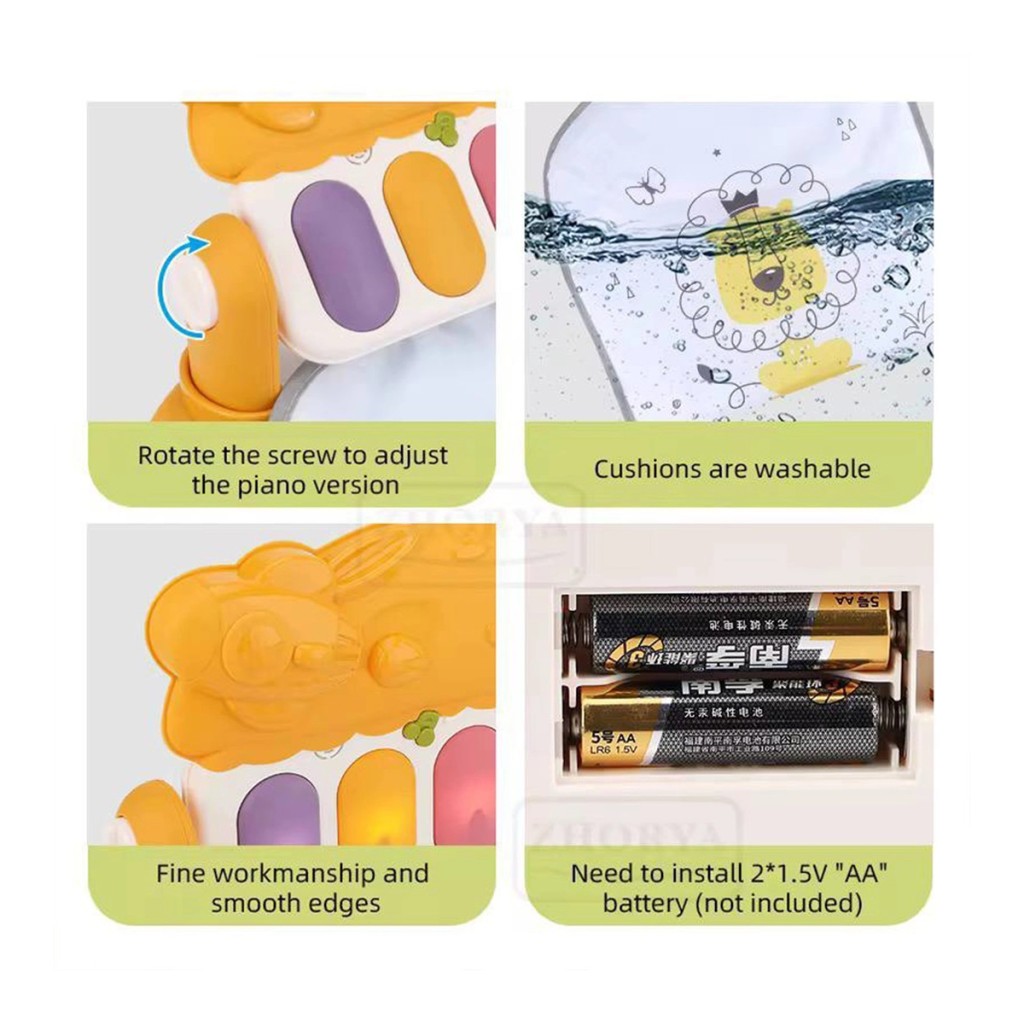 - پیانو و صفحه بازی موزیکال: یک پیانوی کوچک و صفحه بازی تعبیه شده در این تشک، کودک شما را به کشف صداها و ملودیها تشویق میکند. این ویژگی به تقویت هوش موسیقایی و هماهنگی حرکتی کودک کمک شایانی مینماید.