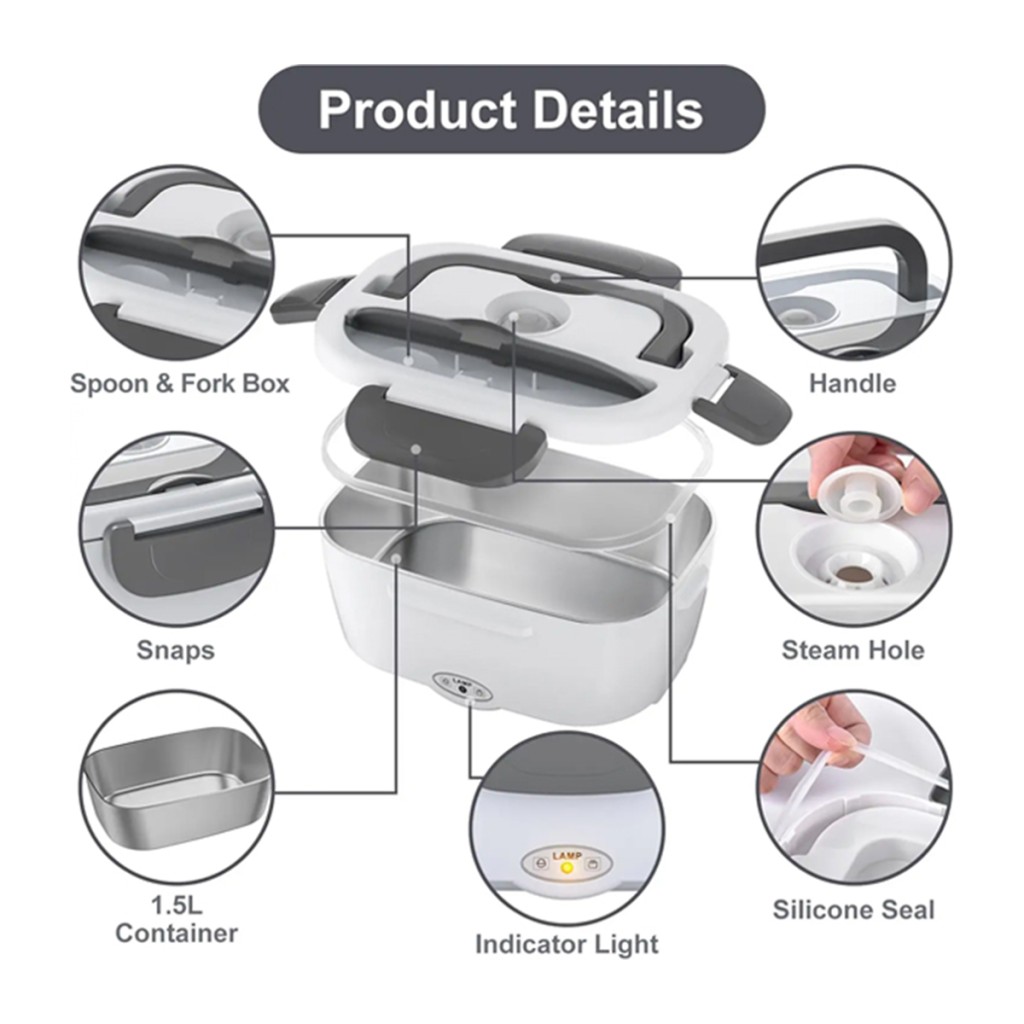این ظرف غذا دارای المنت گرمایی با توان ۴۰ وات است که بهصورت یکنواخت غذا را گرم میکند، بدون اینکه طعم یا رطوبت آن از بین برود. ویژگی خاص آن، حفظ بخار آب داخل محفظه است که برخلاف مایکروویو، از خشک شدن غذا جلوگیری میکند. ولتاژ چندگانه (۱۱۰ ولت، ۲۲۰ ولت، ۱۲ ولت و ۲۴ ولت) باعث میشود بتوانید آن را هم در خانه و هم در ماشین استفاده کنید.