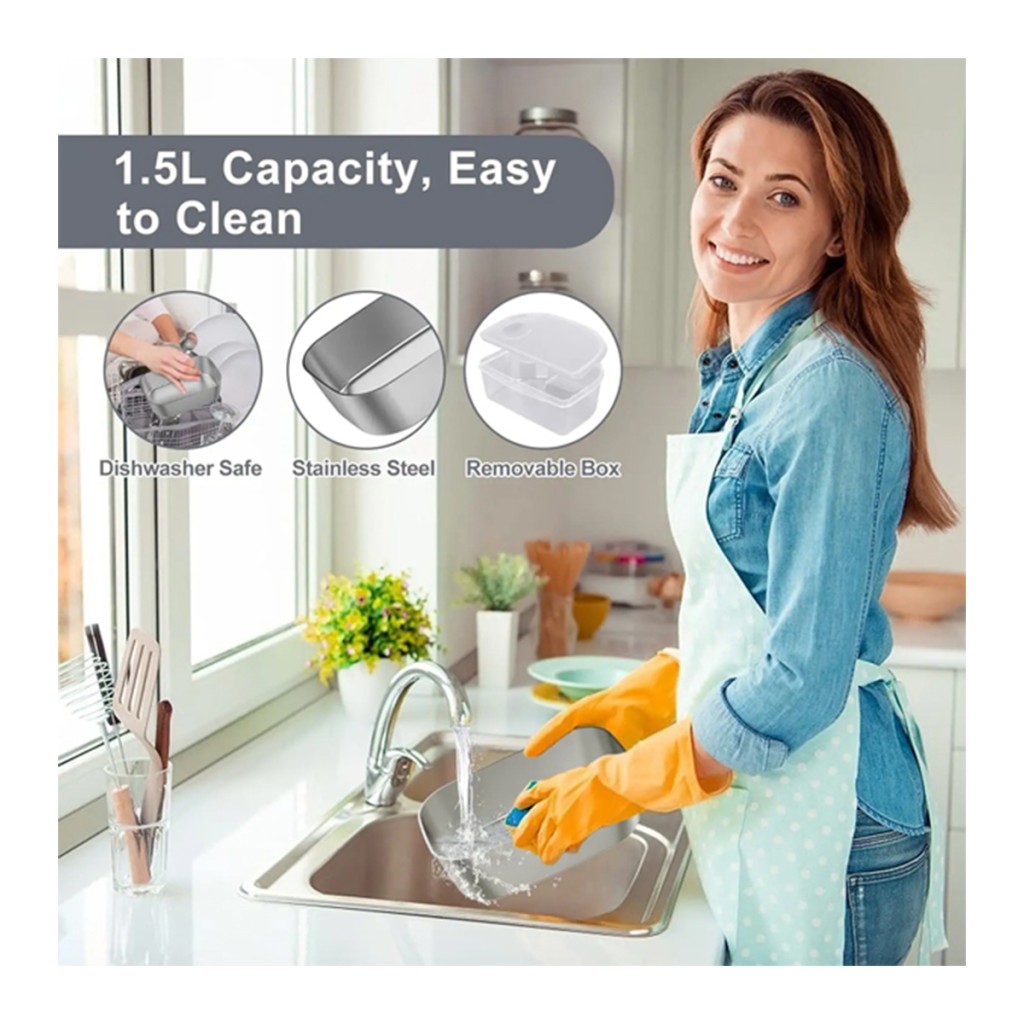مخزن استیل داخلی این ظرف کاملاً جداشدنی است و به راحتی میتوانید آن را بشویید یا در ماشین ظرف شویی قرار دهید. همچنین دارای محفظه جداگانه برای انواع غذاهاست تا طعمها با هم مخلوط نشوند.