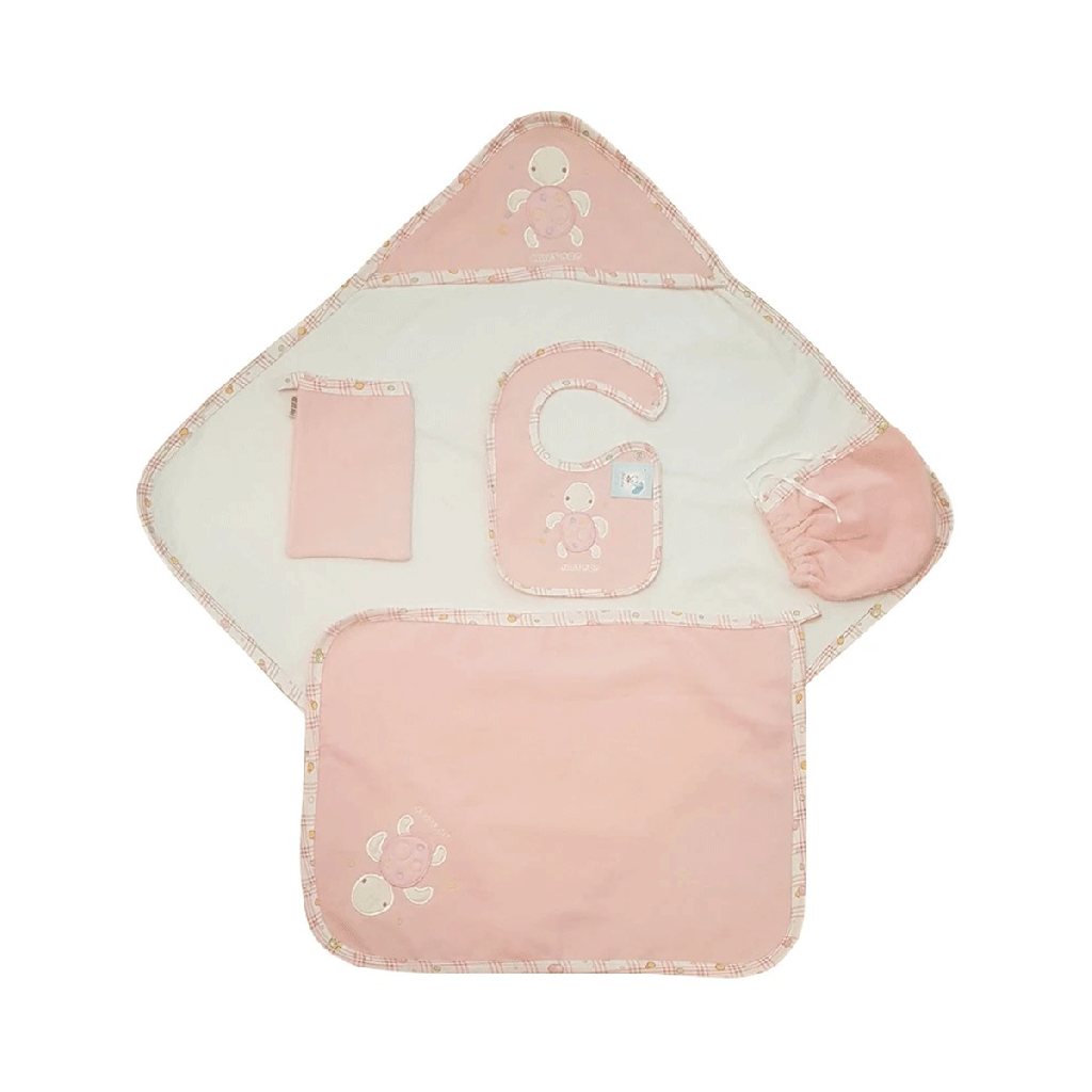 سرویس حوله 5 تکه کودک مری پاپ طرح لاک پشت صورتی