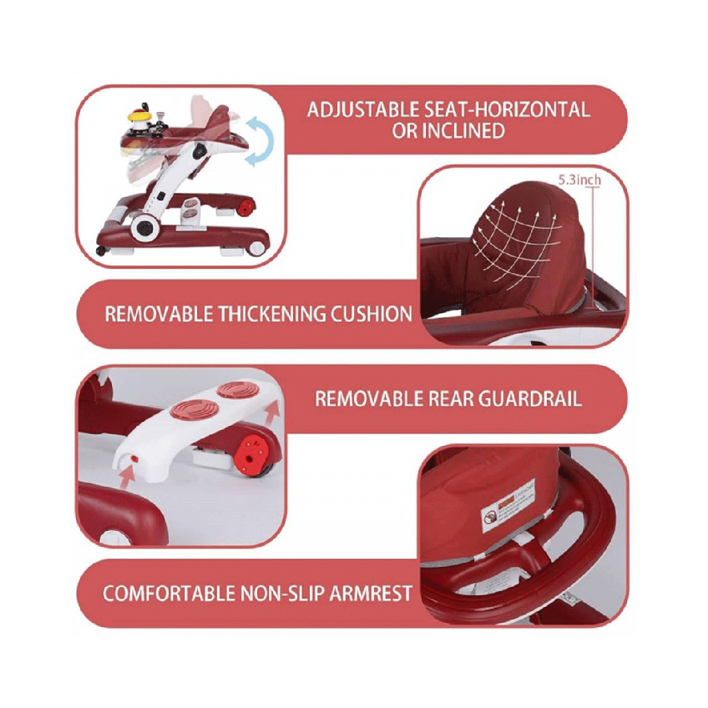 مناسب برای سنین ۶ ماه به بالا طراحی دوکاره (واکر + روروئک) : ترکیبی از واکر و روروئک هست که امکان حرکت و بازی همزمان را فراهم میکنند.